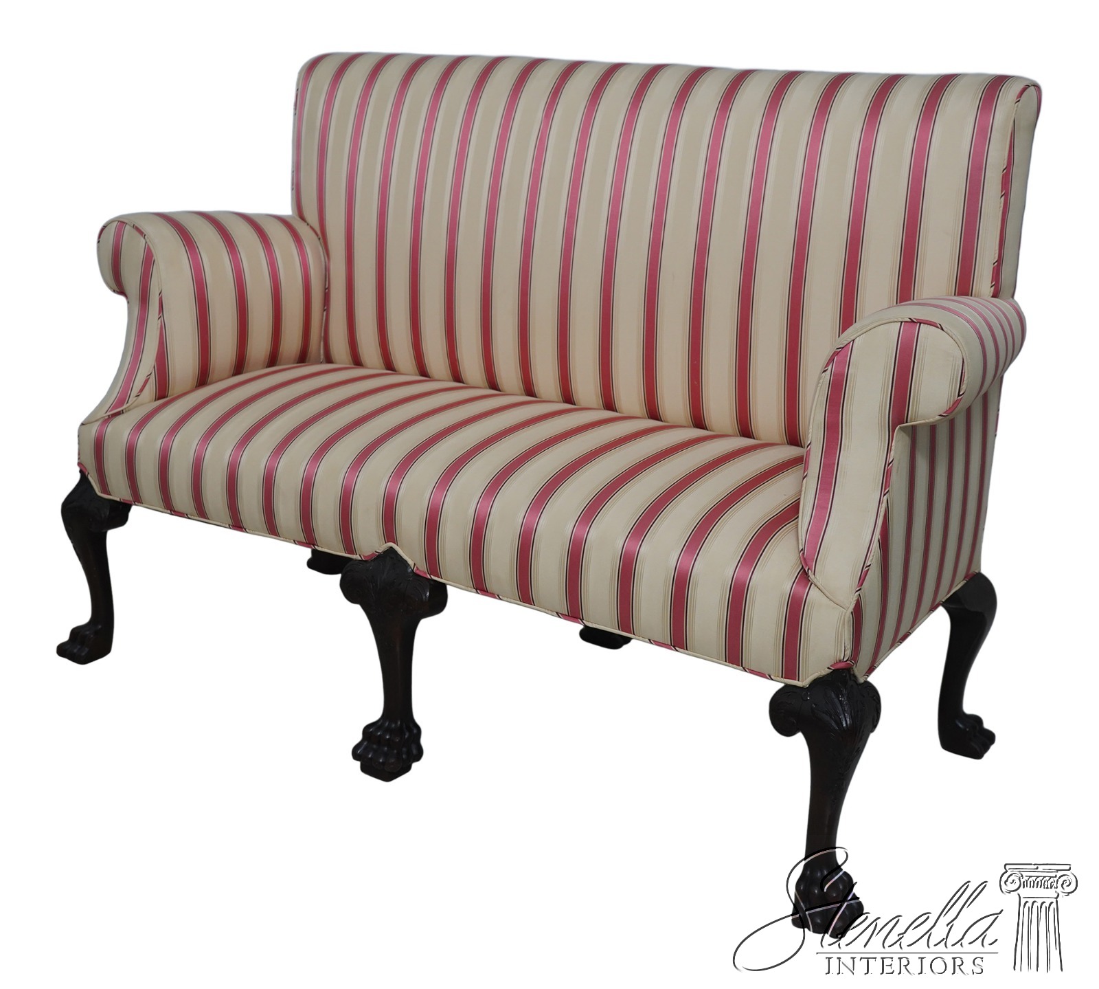 70072: Vintage Upholstered Georgian Style Rolled Arm 6 Leg Loveseat