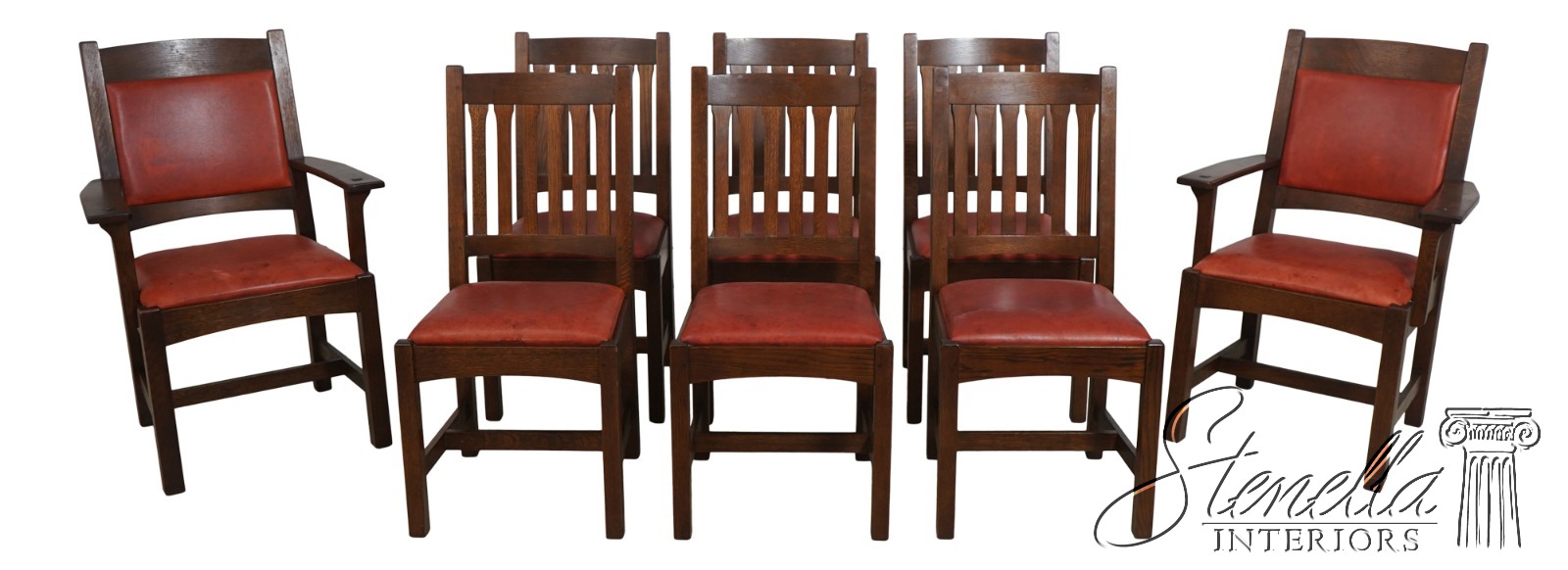 70237: Set of 8 STICKLEY Mission Oak Leather Dining Room Chairs