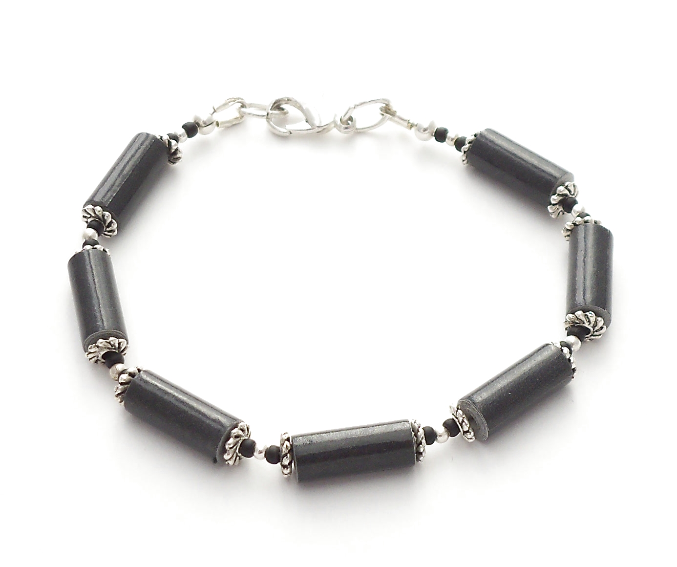 Black Paper Bead Bracelet Silver and Black Accents Simple Elegant