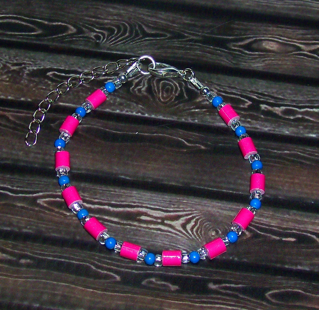Type(s) | Bracelet | Paper Color(s) | Pink | Main Metal Color | Silver | Clasp | Lobster | Length | 7 Inches w/ extender | Change Size | Yes! We can go up or down in size ($0.50 fee) | Item Number | 113 | Care of ALL Paper Bead Jewelry | The beads are sealed for better durability. This makes them water resistant and not water proof. So a light rain would be okay but maybe not a shower and they really frown on helping with the dishes |