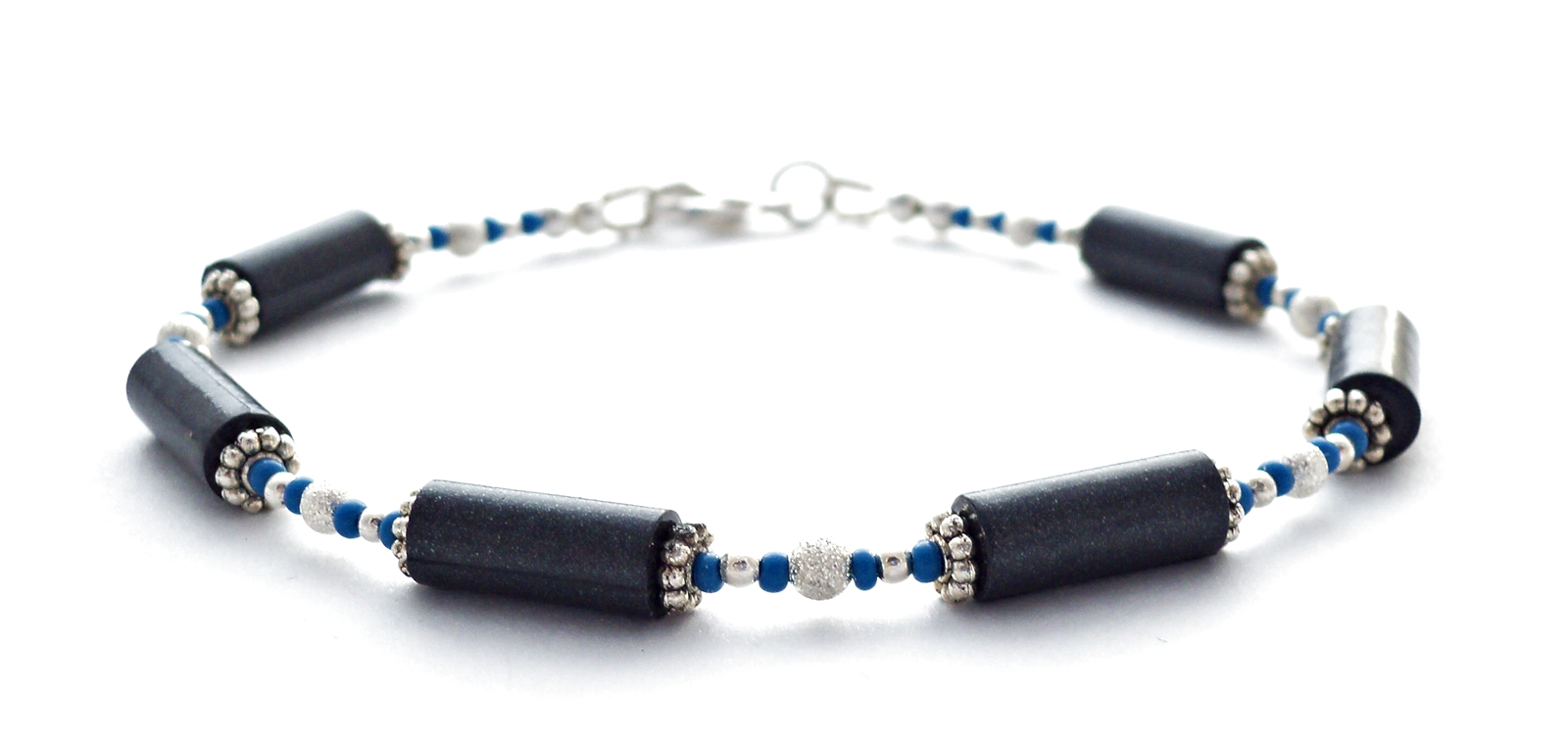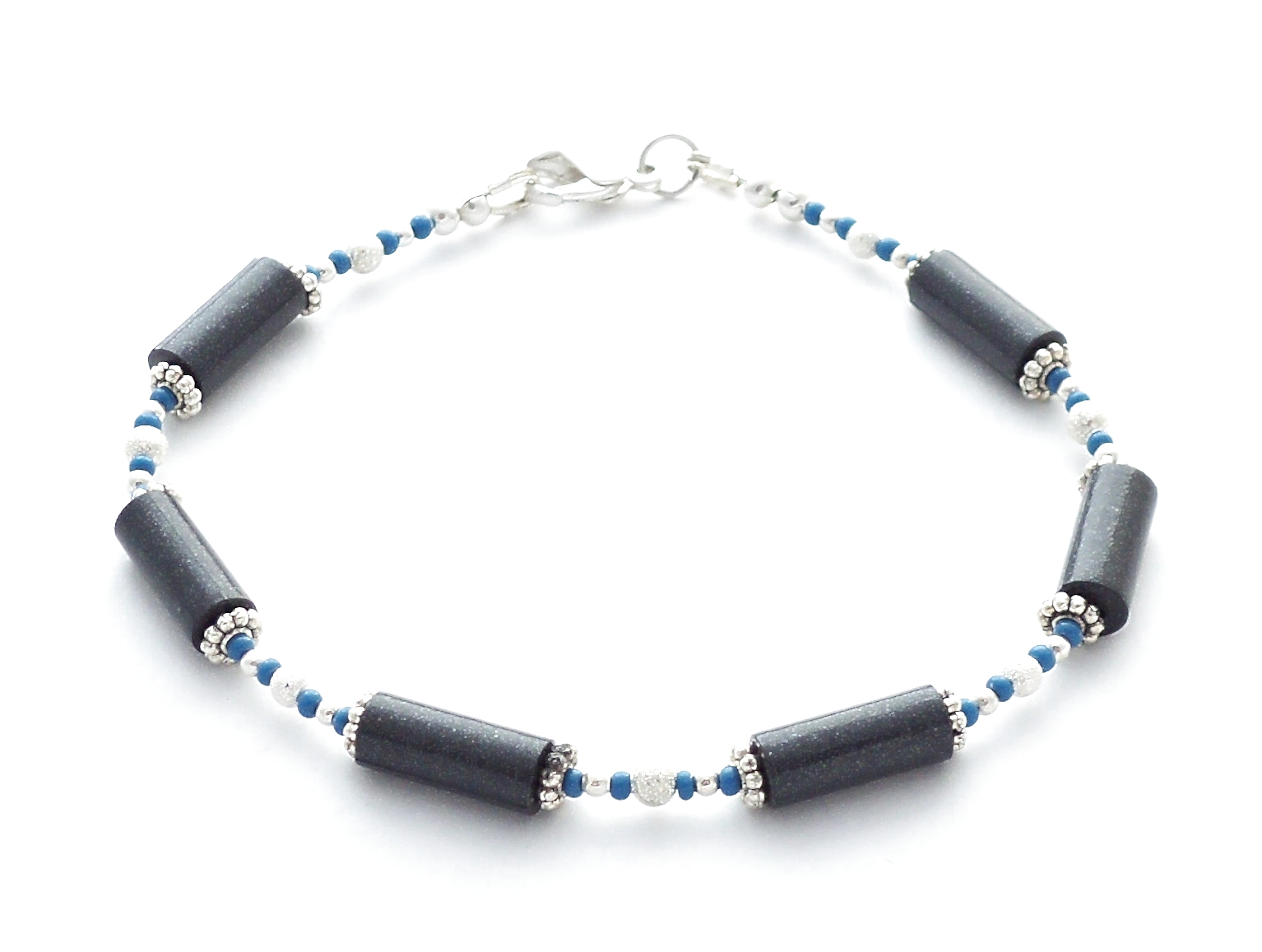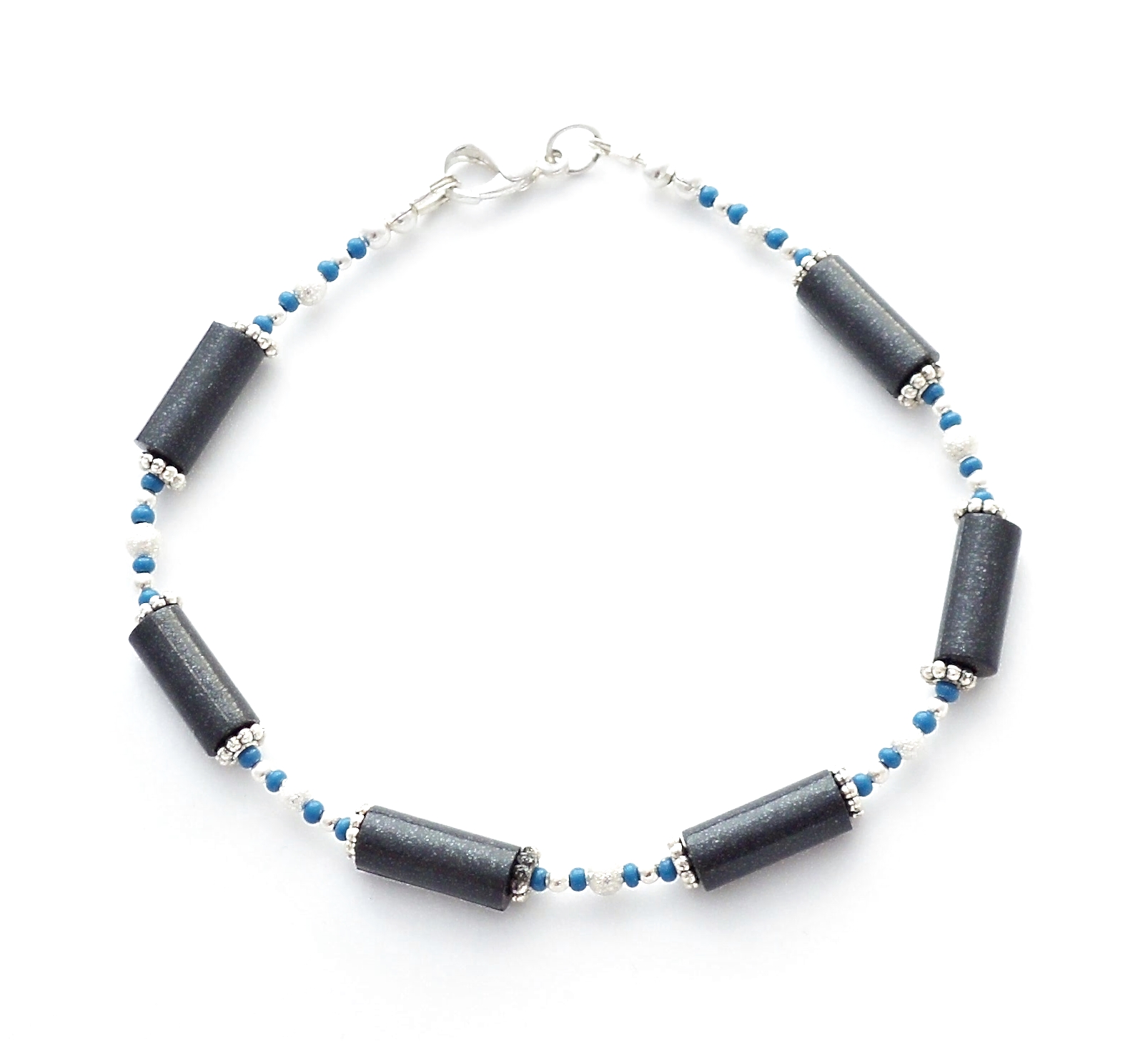 Shimmery Black Paper Bead Bracelet Pearl Simple Blue Beads Silver