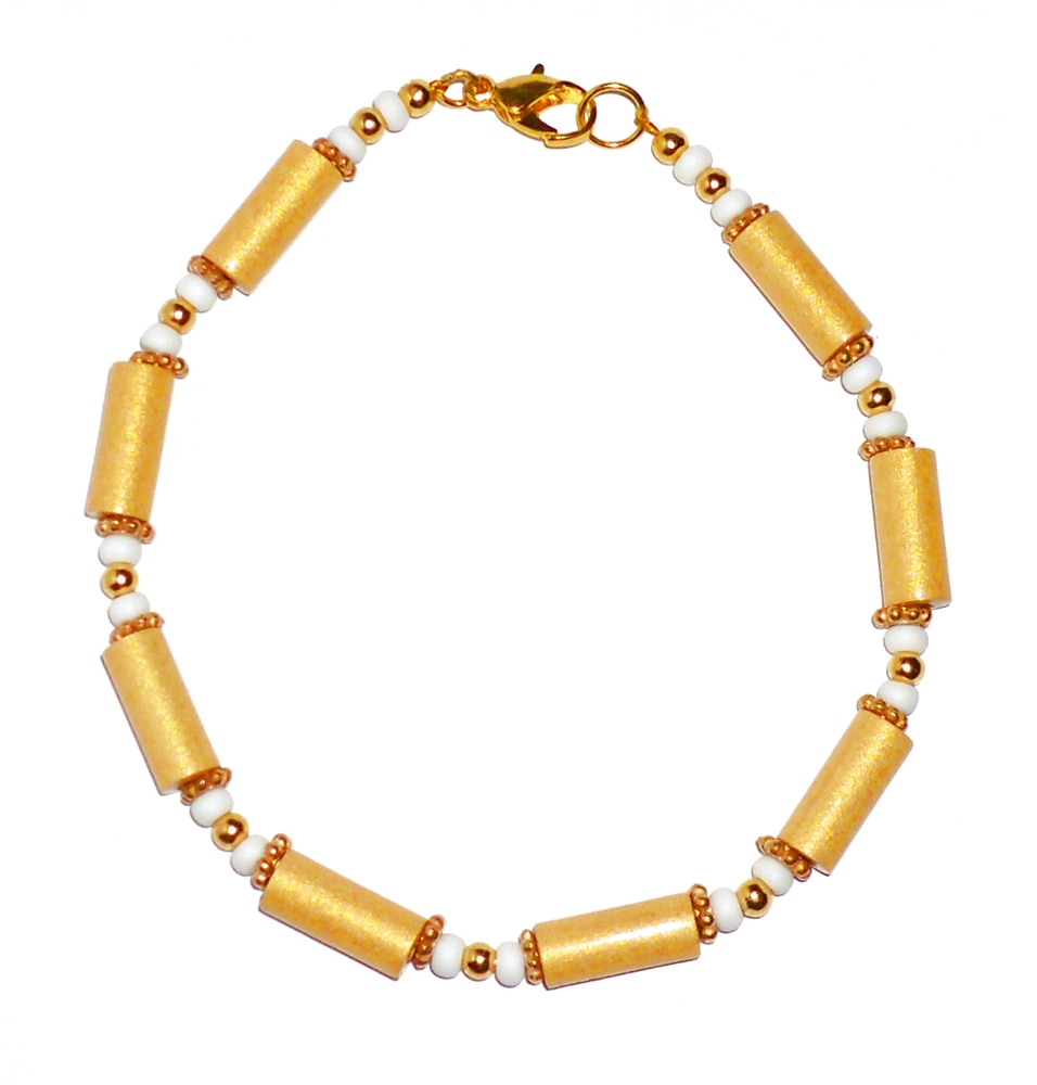 Shimmery Gold and White Paper Bead Bracelet Anklet
