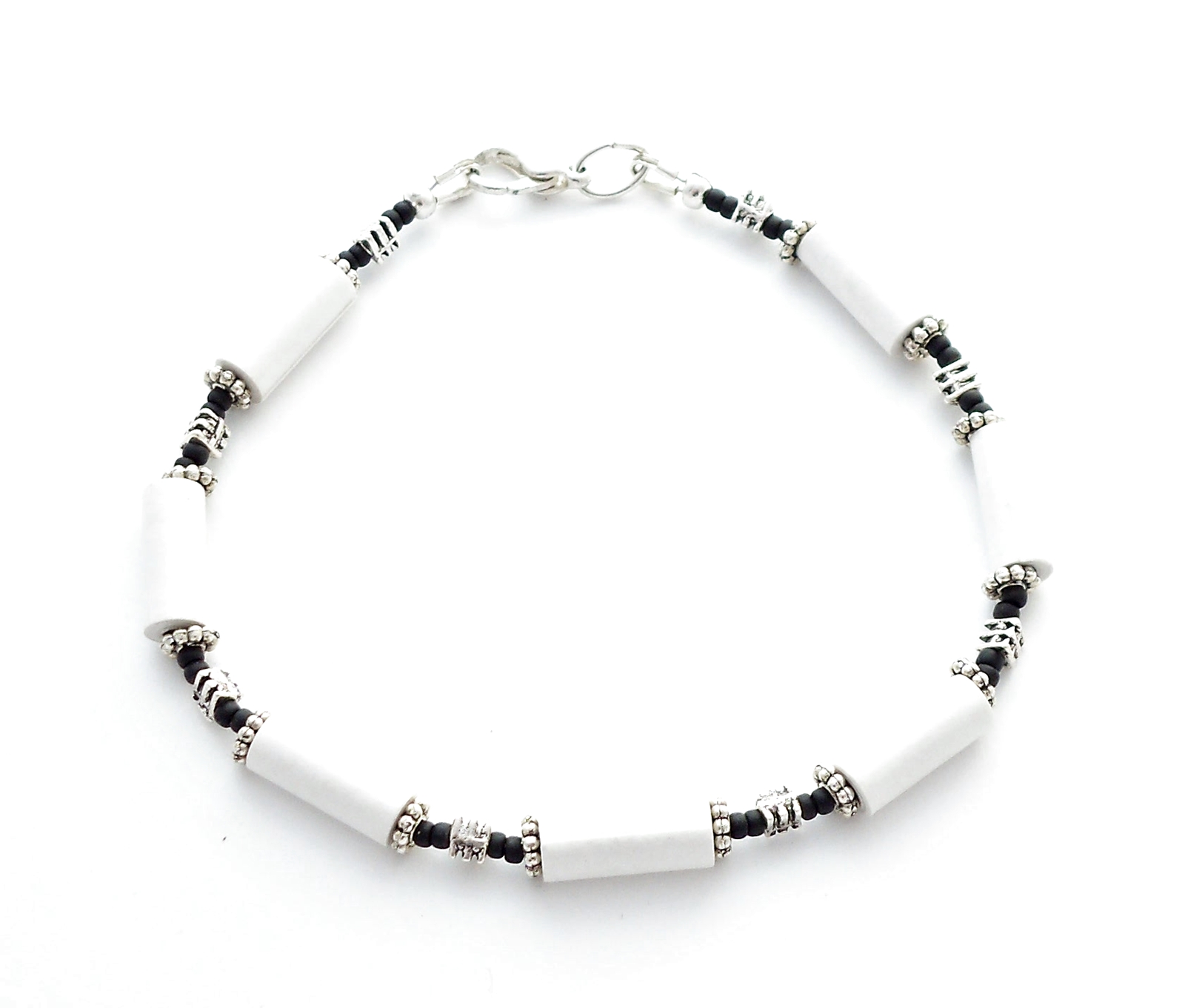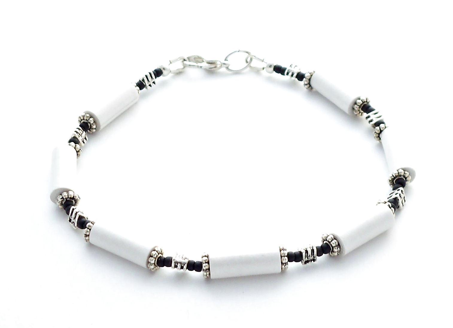 Shimmery White Paper Bead Bracelet Pearl Simple Black Beads