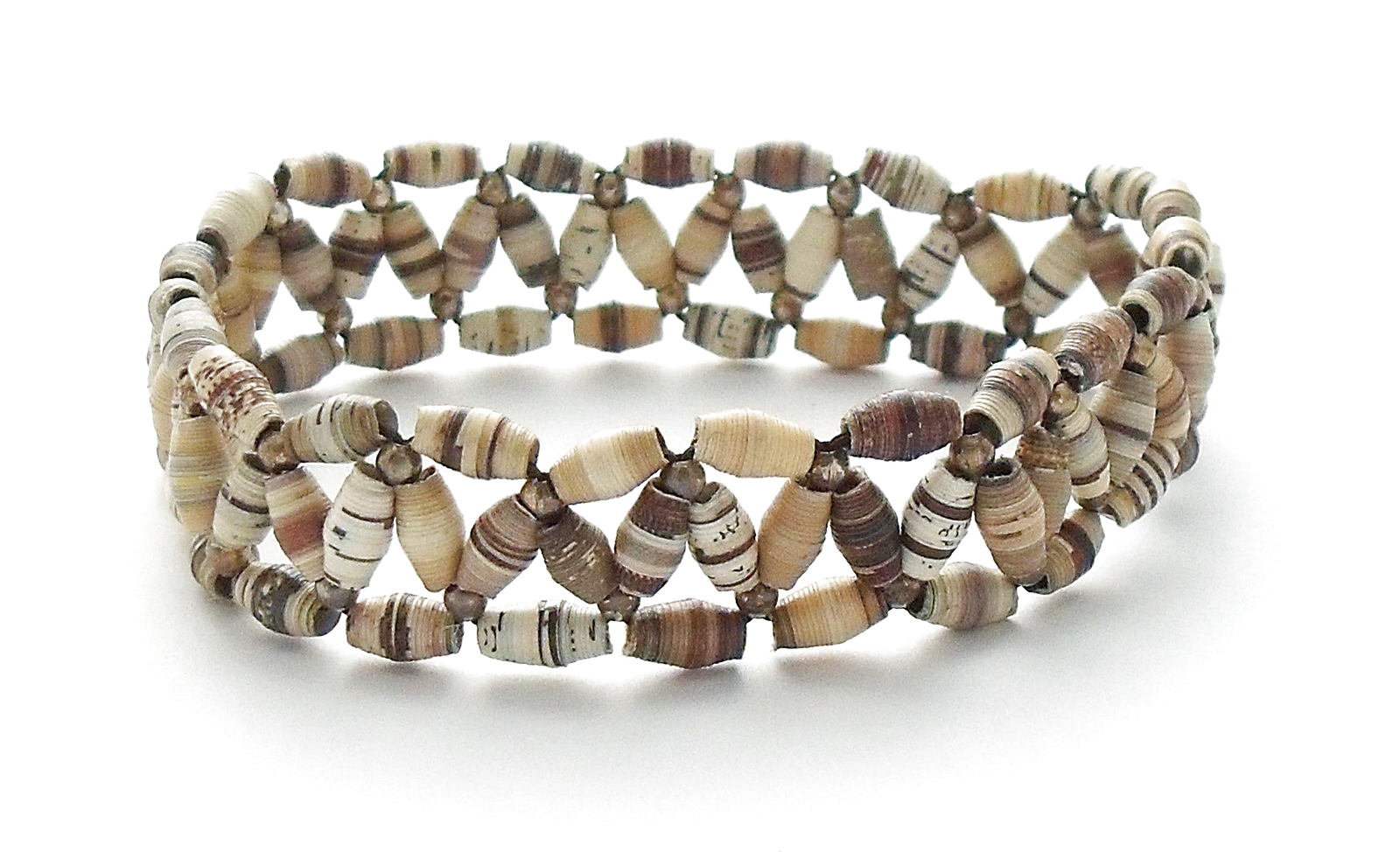 Earth Tones Tan Brown Natural Recycled Paper Bead Stretch Bracelet USA