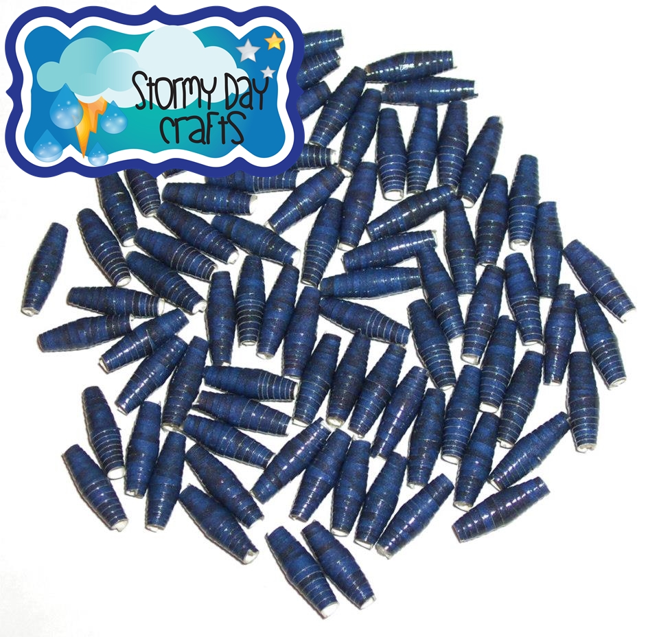 20ct Dark Blue Navy Black Swirl Barrel Bicone Paper Beads
