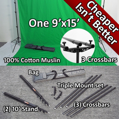 Britek#GH3915 9 x15 portable background support with muslin and triple mount