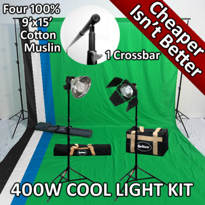 Britek#F1BWBBG11915 400w Professional Back Light Kit with Fluorescent Light Barndoor&muslin