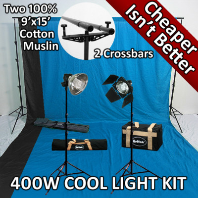 Britek#F1BBBH2915 400w Professional Back Light Kit with Fluorescent Light Barndoor&muslin