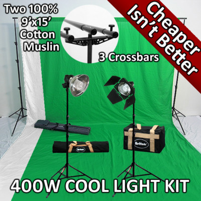 Britek#F1BWGH3915 400w Professional Back Light Kit with Fluorescent Light Barndoor&muslin