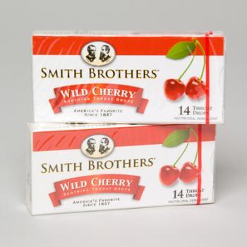 Smith Brothers Wild Cherry Cough Drops. 14 Count Box. Made in USA. Case Pack 140