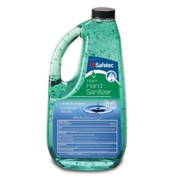 "Instant Hand Sanitizer Fresh Scent 64 oz Pump. Made In USA Kills 99.99% of germs in 15 seconds without the use of soap and water. Our formula evaporates completely with no rinsing required. (a.b.h.c. ) Instant Hand Sanitizer contains aloe vera to add moisture with each use, thus encouraging frequent hand-washing to aid in reducing the risk of cross-contamination. (a.b.h.c. ) Instant Hand Sanitizer is available in convenient pump dispensers, single use pouches and flip top dispenser bottles. Our hand sanitizer helps you meet OSHA, APIC and CDC hand washing recommendations in the absence of soap and water. Instant Hand Sanitizer has demonstrated virucidal activity against HIV-1 and Avian Flu A in 15 seconds. (Results of in vitro time kill test studies)" Case Pack 8