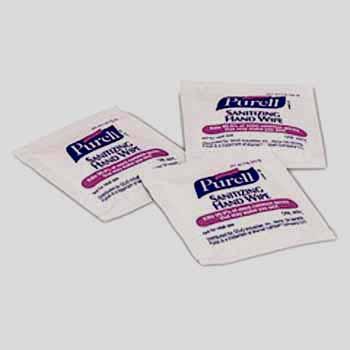 "PURELL Sanitizing Hand Wipes. Economical towelettes clean and sanitize. Individually wrapped, ""on-the-go"" amenity item for use in the foodservice, travel and hospitality industries. Made with 62% ethyl alcohol--the same active ingredient as PURELL Instant Hand Sanitizer. 1,000 wipes per case. (Also see handy dispenser designed for these wipes - SKU#354086, sold separately)" Case Pack 1000