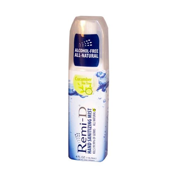 "Remi-D Hand Sanitizing Mist. Expiration date: 08/2011. At home or on the go, clean is only a spray away thanks to Remi-D's clinically proven formula that cleans hands without drying out your skin. Kills 99.99% of germs. All natural. Kid Safe. No messy gels. Alcohol free. All natural. Just apply 1 to 2 mists into the palm of each hand and rub over the surface of your hands. That's it. Fast drying, fresh smelling. Proven effective, and gentle to your skin. And one 4-oz mist contains up to 2000 sprays! Kills 99.99% of germs in seconds. All natural and alcohol free. Light Cucumber Tea Tree fragrance. 4 oz spray." Case Pack 12