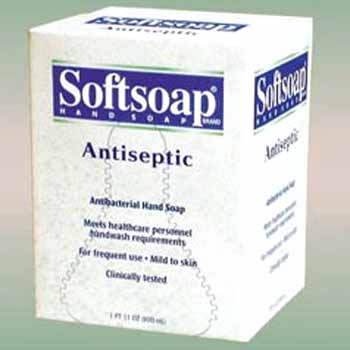 "Softsoap Antiseptic Soap Refill. Health care personnel hand wash reduces the potential risk of cross-contamination. Contains 0.5% PCMX, a degerming agent. NSF/USDA Classification E4. Dispenser CPC 01946 will be provided FREE with purchase of this 800-ml refill. Please call Colgate-Palmolive at 1-888-276-0783 to receive your dispenser. 800-ml refill. 12 refills per case." Case Pack 12