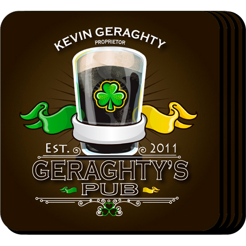 Our personalized coasters are a perfect accessory to any bar or family room. This set of four richly detailed, waterproof coasters reflect his favorite activity. Personalized design is printed in full color onto a non-skid cork base. Includes 4 coasters and mahogany caddy. Each coaster measures 3 3/4" x 3 3/4". Specify design and personalize with first name, last name and established year. Please utilize the "notes" field during checkout to add personalization and any instructions. We will produce the text exactly as you have entered/written it in the font shown. You may also e-mail additional information after checkout. Please include your order number and item number and send to [email protected].