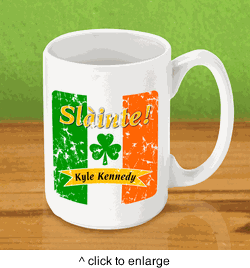 Whether you take your coffee black, with two sugars or a little shot of Jameson, our Personalized Irish Coffee mugs are the perfect way to enjoy your cup o' joe. Our 15 ounce mugs are made of heavy-duty ceramic and come in a variety of whimsical Irish-inspired designs. Personalize with one line of up to 20 characters. Please utilize the "notes" field during checkout to add personalization and any instructions. We will produce the text exactly as you have entered/written it in the font shown. You may also e-mail additional information after checkout. Please include your order number and item number and send to [email protected].