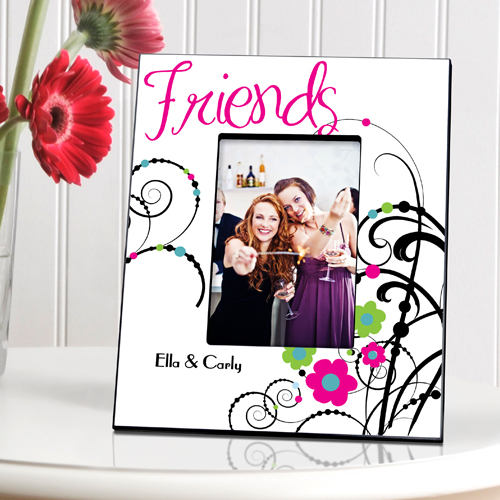 Best buds look great in one of our perky personalized Cheerful Friendship picture frames! Available in a selection of fun and flirty hues that complement today's eclectic decors, these frames truly display the many colors of friendship. Great for graduation or bridesmaid gifts! Frame measures 8" x 10" and holds a 4" x 6" picture. Select design and personalize with one line up to 25 characters. Please utilize the "notes" field during checkout to add personalization and any instructions. We will produce the text exactly as you have entered/written it in the font shown. You may also e-mail additional information after checkout. Please include your order number and item number and send to [email protected].