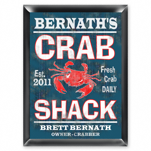 Perfect for a vacation cabin or beach home, our Crab Shack pub sign proclaims "Fresh Crabs Daily", enticing your friends to come and enjoy the latest tasty catch. Featuring the name of the owner/crabber and a date of establishment, this sign boasts a vintage look with blue background and colorful graphics. Dig in! Measures 9" x 12". Personalized with first name, last name and year established. Please utilize the "notes" field during checkout to add personalization and any instructions. We will produce the text exactly as you have entered/written it in the font shown. You may also e-mail additional information after checkout. Please include your order number and item number and send to [email protected].