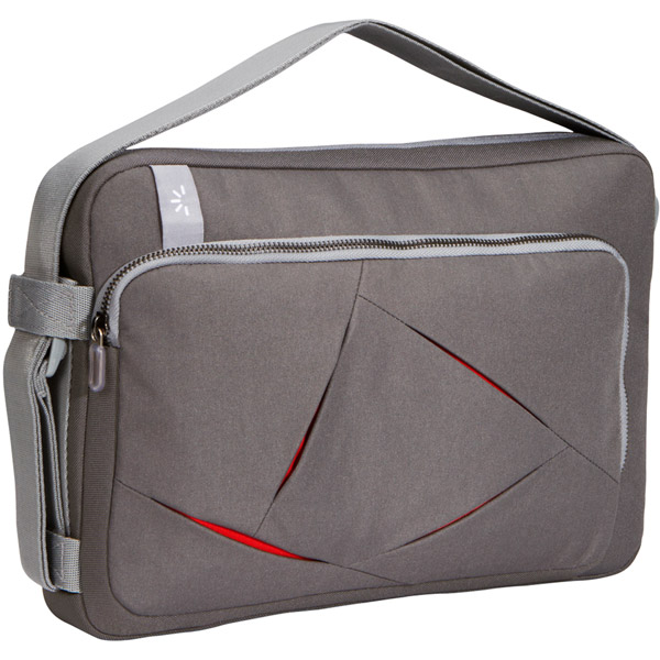 Innovative 3-way strap management system allows case to be carried over the shoulder, across the body messenger style or shortened to hand strap lengthExterior pocket has ample room for power cord and mouse2 mesh pockets keep essentials organizedMain compartment fits files, documents and netbook or 12" laptopHorizontal orientationGray14" W x 15 5/16" H x 3 1/8" D