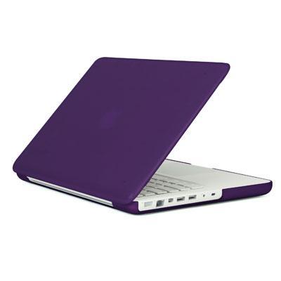 Satin PURPLE 13" Macbook Cover with complete access to all ports, fits 13" polycarbonate unibody released 10/09. Rubber feet for added stability, vented for complete heat dissipation.