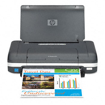 Mobile convenience meets performance for on-the-go capability without compromise. Superior print speeds of up to 22 ppm keep productivity high, wherever, whenever. Lightweight, compact printer packs easily without weighing you down. PC-free printing lets you print from your mobile devices including PDAs, digital cameras, camera phones, and memory cards. Includes long-life HP lithium-ion battery for added convenience. Anti-vibration design allows quiet printing in public places. Maximum Print Speed (Black): 22.0 ppm; Network Ready: No; Printer Type: Inkjet; Print Resolution (Color) (Width x Height): 4800 x 1200 dpi.