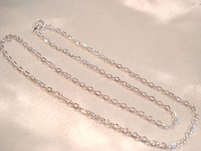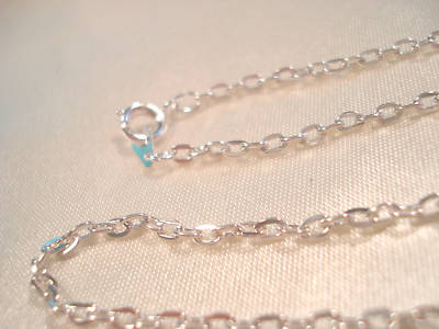 This is a NEW Lot of 3 SILVER PLATED Flat Cable chains. They are 18 inches long. Each little Link is about 2milimeter wide and 2.5 milimeter long. And they come with a sturdy Spring clasp closure .