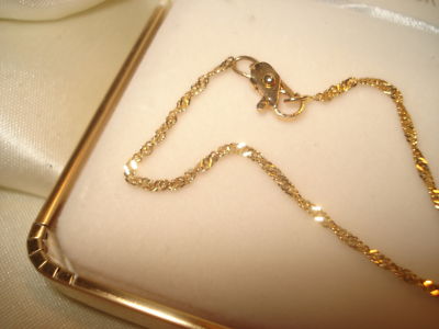 This is a very pretty 8-1/4 INCH VERMEIL BRACELET. IT IS REAL GOLD OVER STERLING SILVER. IT IS A SINGAPORE CHAIN WHICH IS A CURLY HERINGBONE AND STAYS CURLY ALL THE TIME. REAL CUTE! ;) IT HAS A LOBSTERCLAW FOR CLOSURE WHICH IS THE ONLY PART THAT IS GOLD PLATED.