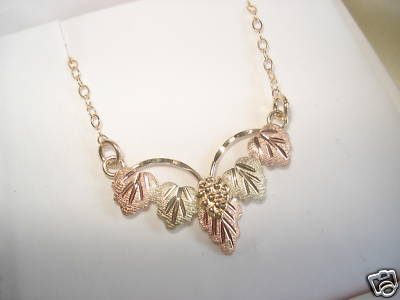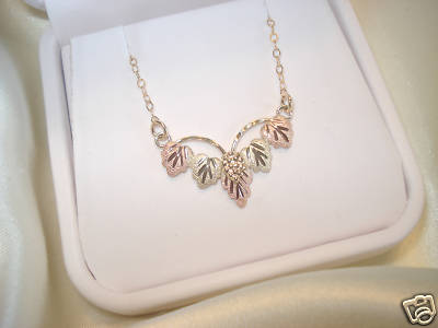 This BEAUTIFUL Black Hills GOLD Necklace  has FIVE LARGE 12K GOLD LEAFS on it and has no silver at all.