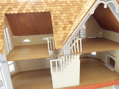 GREAT WOOD DOLLHOUSE W. FP, STAIRCASE VICTORIAN STYLE