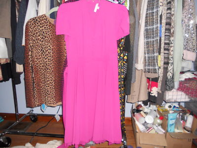 THIS IS A GORGOUS BETSEY JOHNSON DRESS WITH A LOW V-NECK AND TIES IN THE BACK. IT IS A REAL EYE-CATCHER BECAUSE OF THE BEAUTIFUL COLORS IN IT. IT IS VERY COMFORTABLE AND HAS NEVER BEEN WASHED.