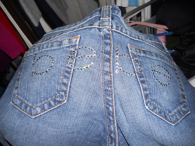 THESE ARE SUPER SEXY JEANS! THE HAVE BEBE WRITTEN ACROSS THE SEAT AND BACK POCKETS IN RHINESTONES! THESE JEANS ARE A LIMITED EDITION AND WERE HARDLY WORN. THESE ARE THE MOST COMFORTABLE JEANS AS WELL.