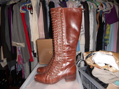 THESE ARE ARE GORGOUS PAIR OF DESIGNER BOOTS. ALTHOUGH THEY LACE UP THE FRONT, THERE IS A SIDE ZIPPER FOR MORE CONVENIENCE. THEY ARE VERY CHIC AND STYLISH. RIGHT ON TREND FOR THE SEASON!