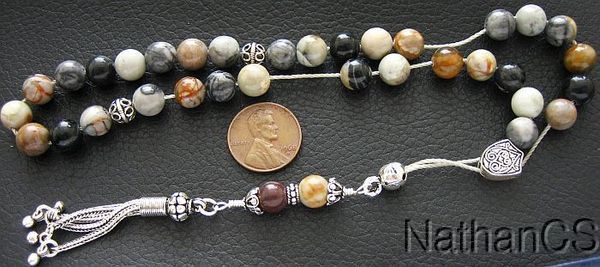 Greek Komboloi Worry Beads Picasso Jasper & Sterling Silver