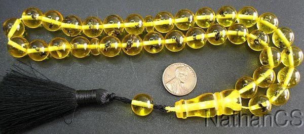 One more impressive, extremely original and truly unique Tesbih - Masbaha by Tesbihci : Amber Color Resin with one or more insects in each and very bead.