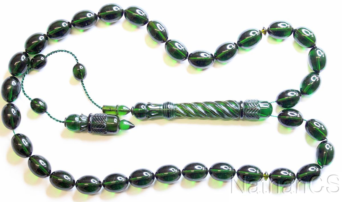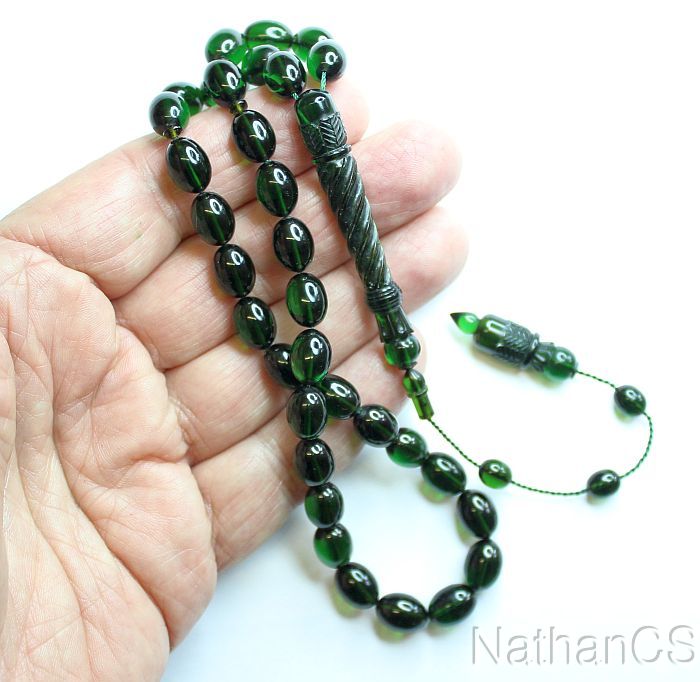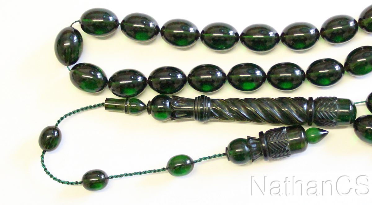 Prayer Beads Tesbih Green Catalin Superior Carving Collector's Special Offer XRR