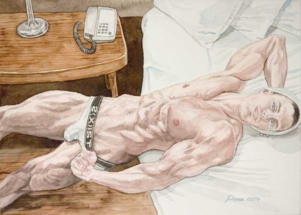 9.5" x 13" watercolor print balancing-over-bed