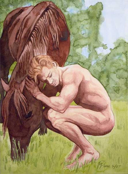9.5" x 13" watercolor print by-horse