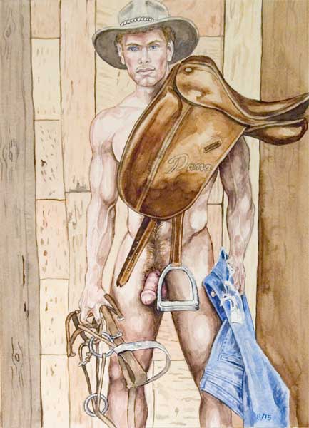 9.5" x 13" watercolor print cowboy-with-gear