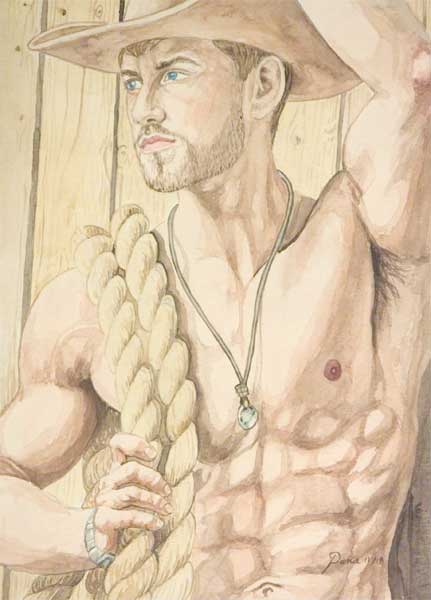 9.5" x 13" watercolor print cowboy-with-rope