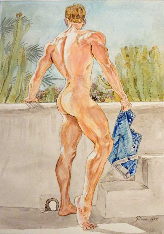 9.5" x 13" watercolor print nude male Arizona-back-view
