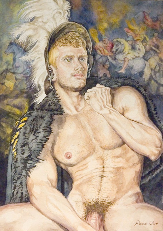 9.5" x 13" watercolor print nude male War-is-Hell