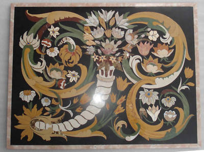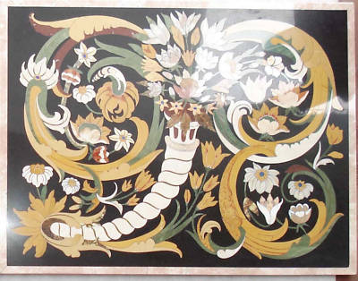 Description : This is a beautiful Marble Table Top/ Wall Panel made by use of semi precious stones on Marble. Will add beauty to your Drawing room, can be used as a Wall Panel, Center/Coffee Table. All the Stones used are natural, edges are molded & polished, and backside is honed finished.