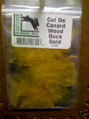 HareLine CDC (Cul De Canard) feathers, color GOLD WOOD DUCK . These are great for Posts,emergers wings and wing cases. The natural oil in CDC floats. It is soft and fluffy. Adds lots of life.