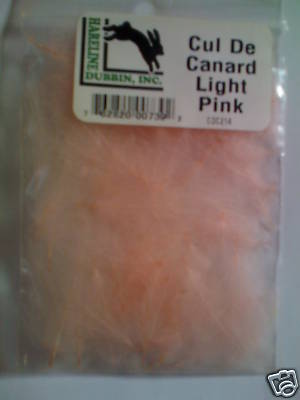 HareLine CDC (Cul De Canard) feathers, color LIGHT PINK. You can tie this in as a post, and tie an awsome hendrickson! Or use for emergers wings and wing cases. The natural oil in CDC floats. It is soft and fluffy. Adds lots of life.
