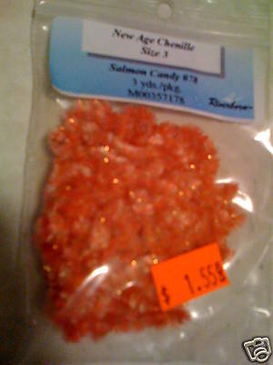 Riverbourne NEWAGE CANDY chenille, #3 SALMON CANDY is a great color for Salmon and Steelhead Streamer patterns and EGG fly patterns. Lots of flash, lots of fish!!!! Be sure to add me to your favorites list!