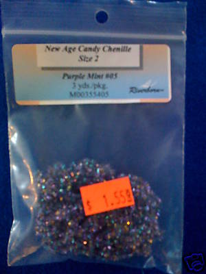 NEW AGE CANDY Chenille size #2. Color (purple mint). Great color and flash. And Great for Salmon and Streamer Flies. Ask about More Colors.