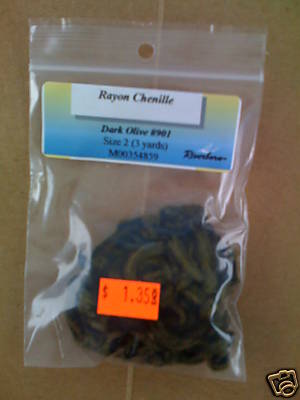 Riverborn Rayon Chenille Dark Olive Size # 2 Great for streamers