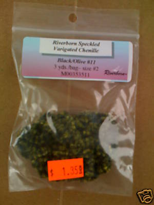 Riverborn Chenille Varigated Black Olive Size #2 Great for Streamers