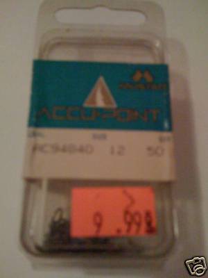 100 count pack of MUSTAD AC94840 DRY FLY HOOKS size 12. Hollow point, forged straight, turned down tapered eye, bronzed, extra fine wire AccuDoint dry fly hooks.
