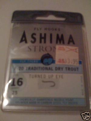 ASHIMA DRY FLY HOOKS size 16. F-20 traditonal dry fly hook turned up eye. Check out my other items!